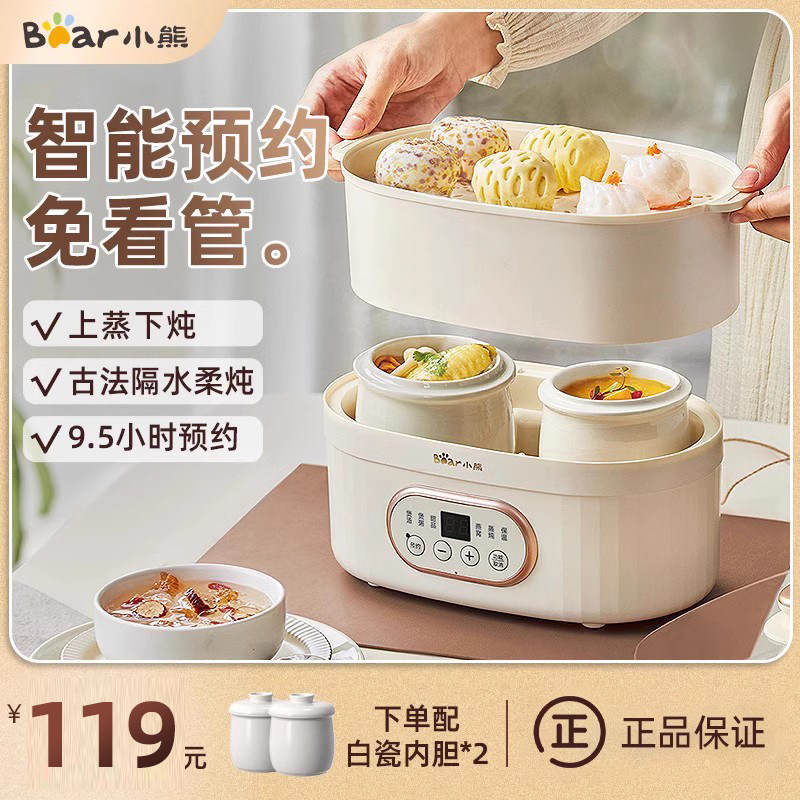 小熊电蒸锅多功能家用炖盅隔水炖双层智能预约电蒸汽锅小型早餐机