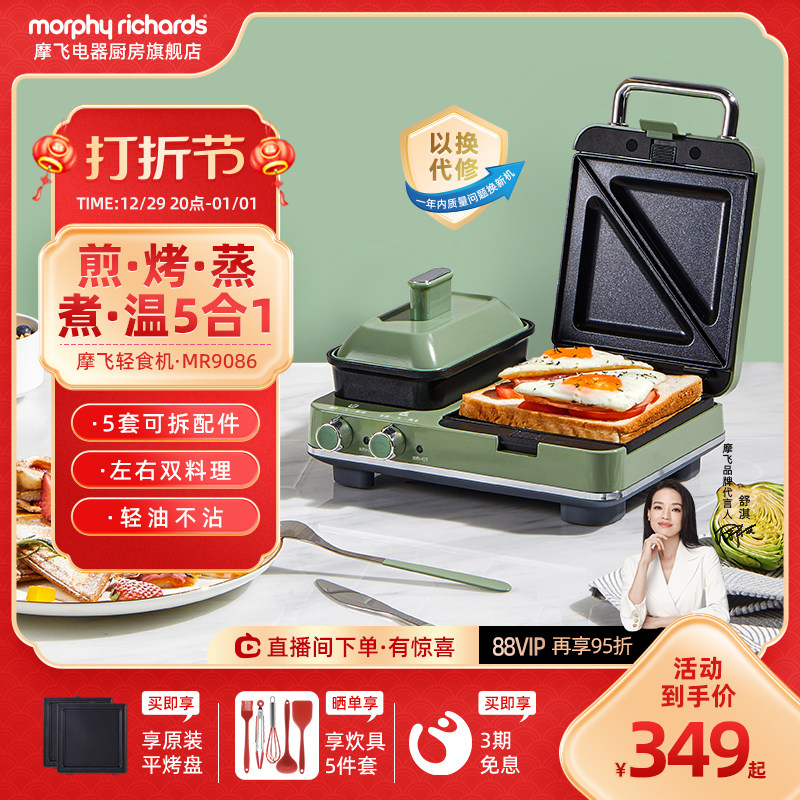 山本早餐机家用小型全自动加热片三明治多功能烤吐司面包华夫饼机