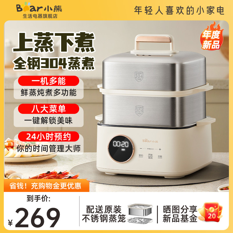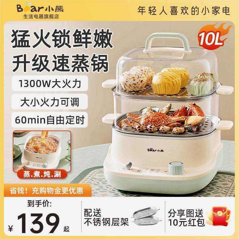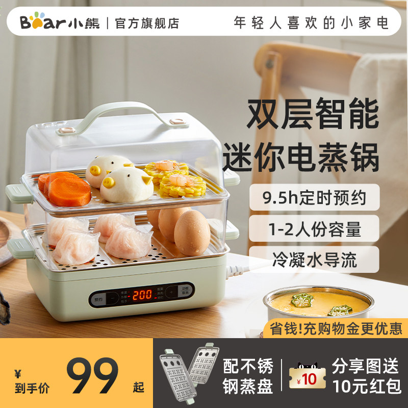 小熊电蒸锅多功能家用定时小型双层蒸汽锅早餐机蒸菜大容量蒸蛋器