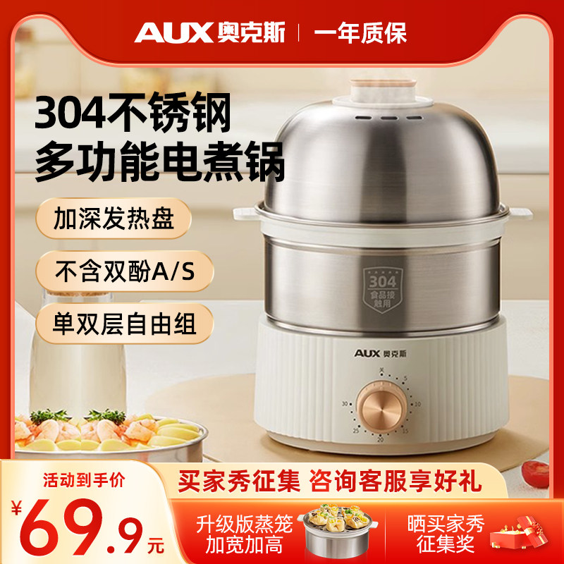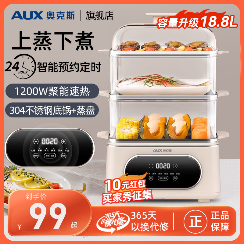 奥克斯电蒸锅多功能一体家用三层不锈钢大容量箱2023年新款早餐机