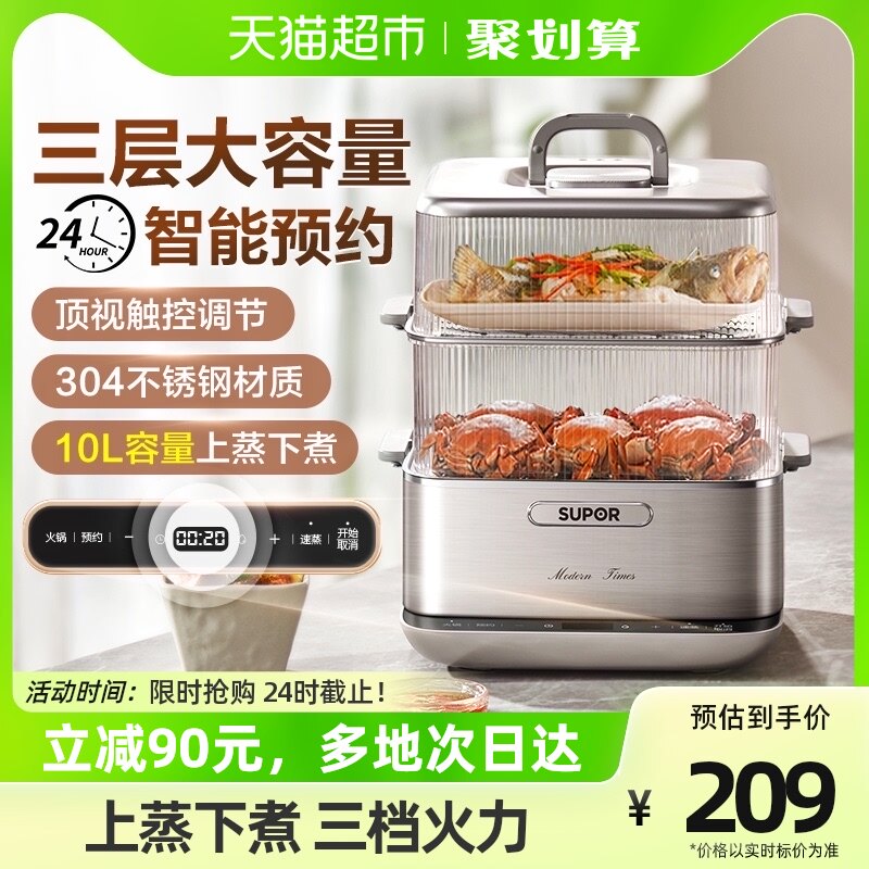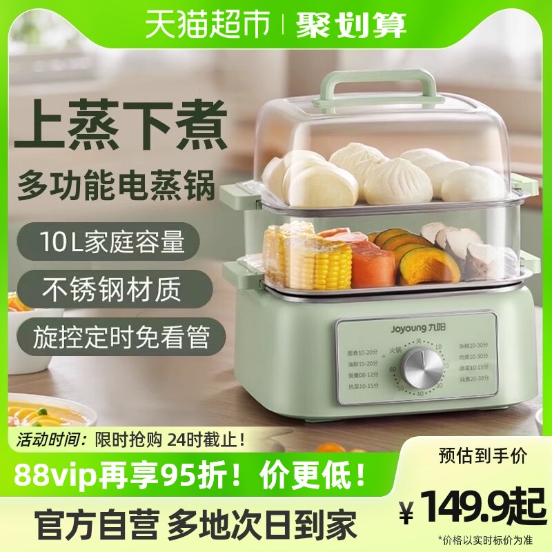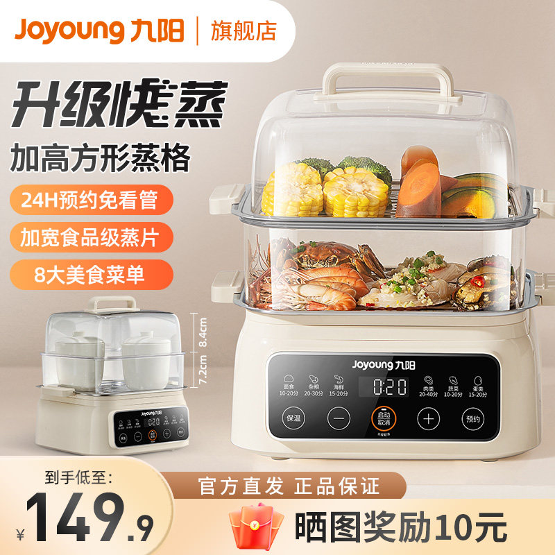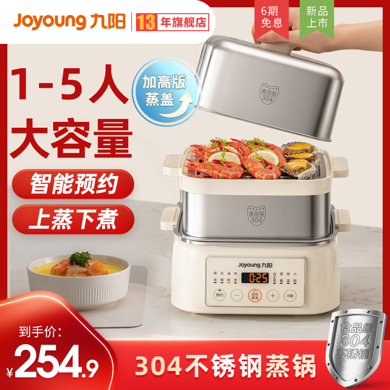 九阳电蒸锅不锈钢蒸锅家用三层蒸煮一体锅多功能早餐机智能预约新