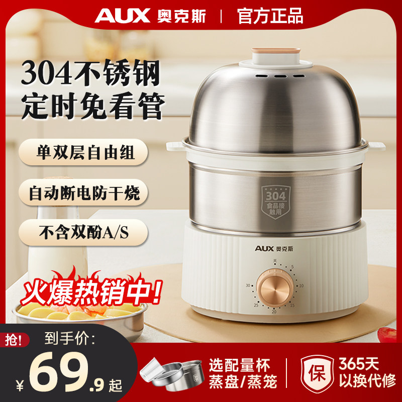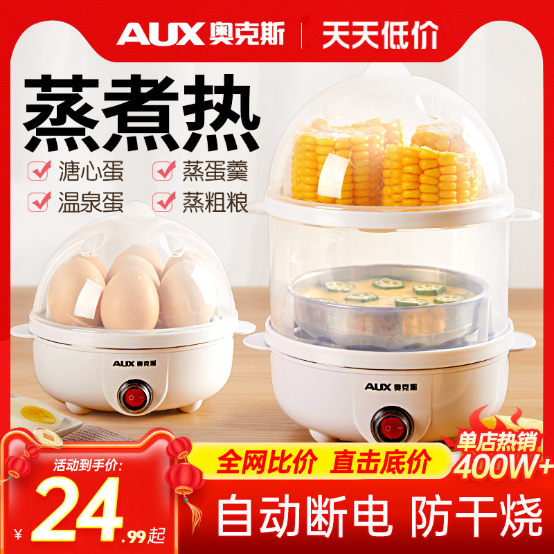 奥克斯煮蛋蒸蛋器双层自动断电家用小型鸡蛋迷你多功能早餐机神器
