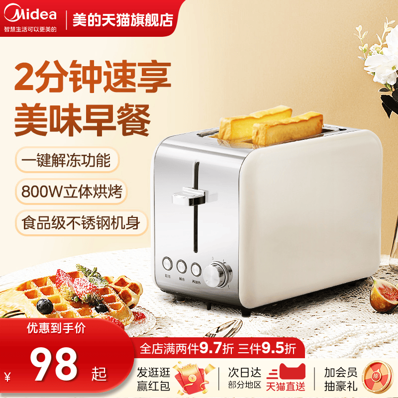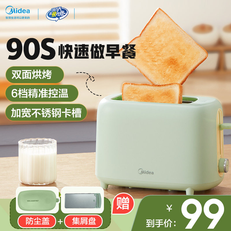 美的吐司机烤面包机家用片加热三明治早餐机小型全自动吐司多士炉