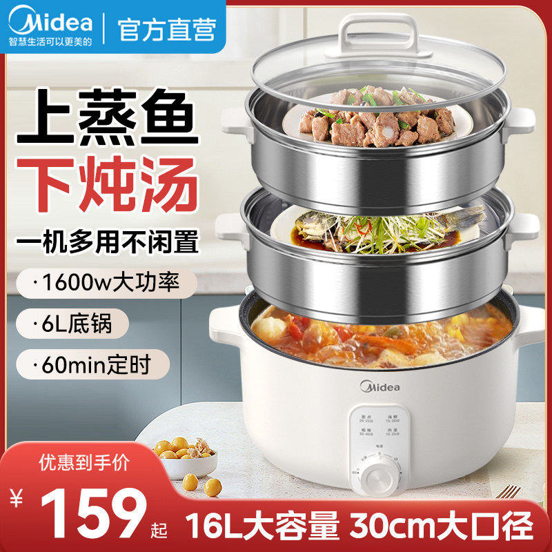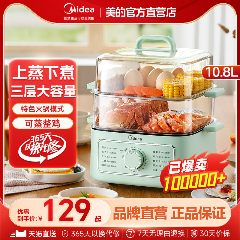 美的电蒸锅功能家用三层蒸煮一体锅早餐机大容量蒸笼官方旗舰正品