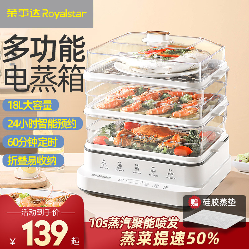 荣事达电蒸锅多功能家用三层大容量全自动蒸汽锅早餐机蒸菜电蒸箱