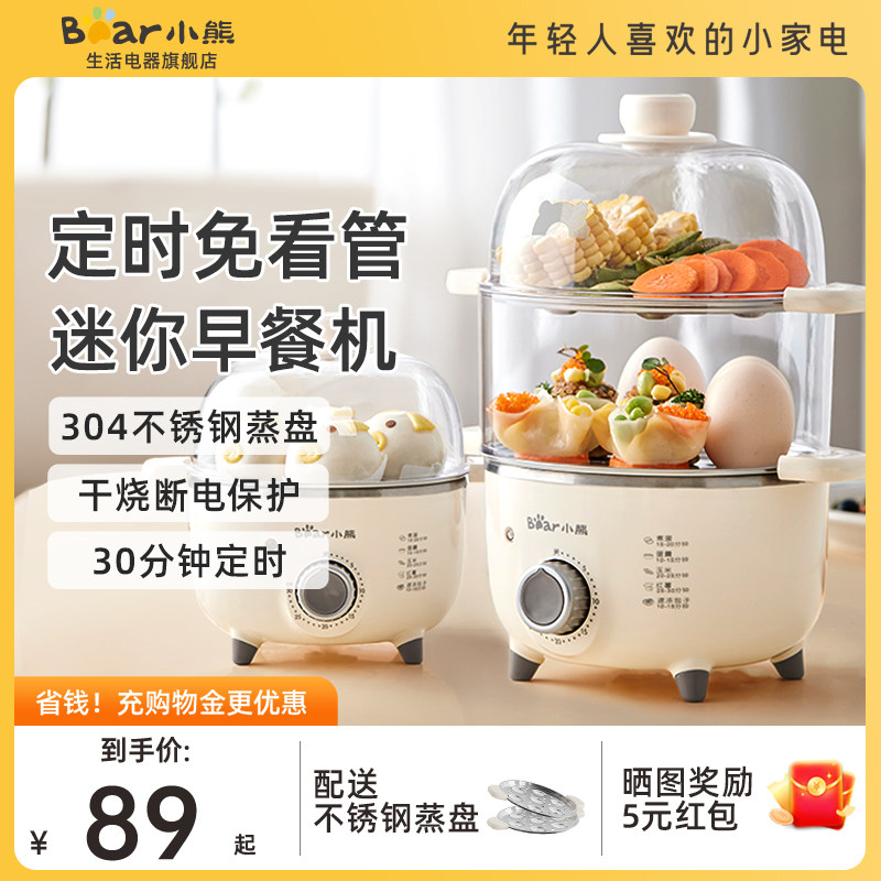 小熊电蒸锅小型不锈钢家用多功能定时自动断电蒸蛋器煮蛋器早餐机