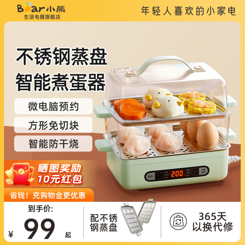 小熊煮蛋器自动断电双层蒸蛋器预约定时家用小型鸡蛋羹神器早餐机