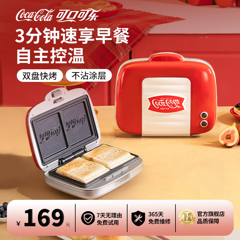 可口可乐早餐机家用全自动加热小型三明治华夫饼机多功能烤面包机
