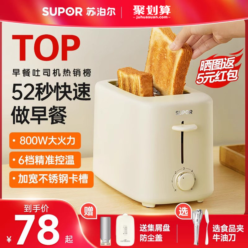 苏泊尔面包机吐司机烤面包机家用早餐机烤土司片2023年新款多士炉