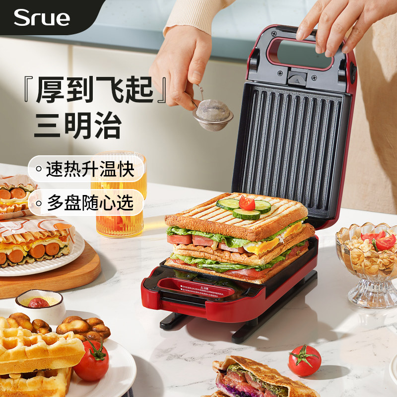 Srue三明治机早餐机加厚封边烤面包吐司华夫饼轻食机家用小型一体