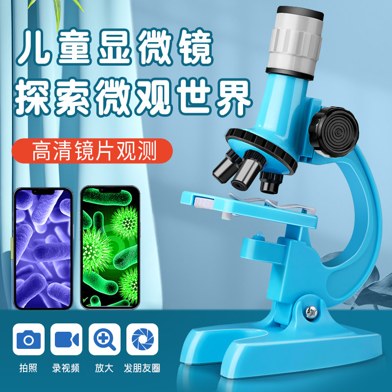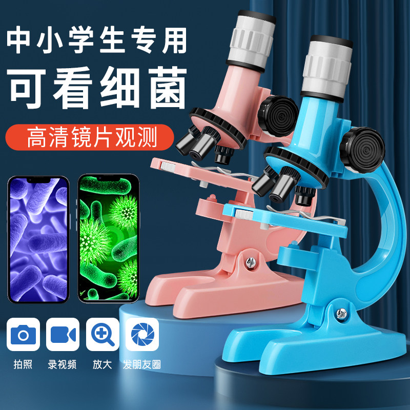 显微镜生物儿童科学实验套装中小学生专用光学手持便携电子目镜台式高清手机放大镜专业级1200倍可看精子细菌