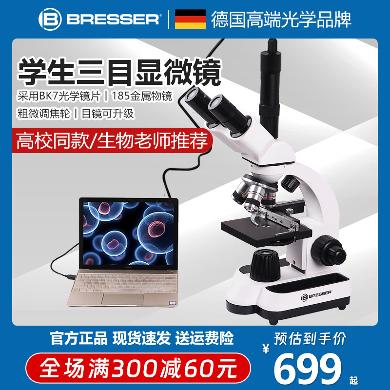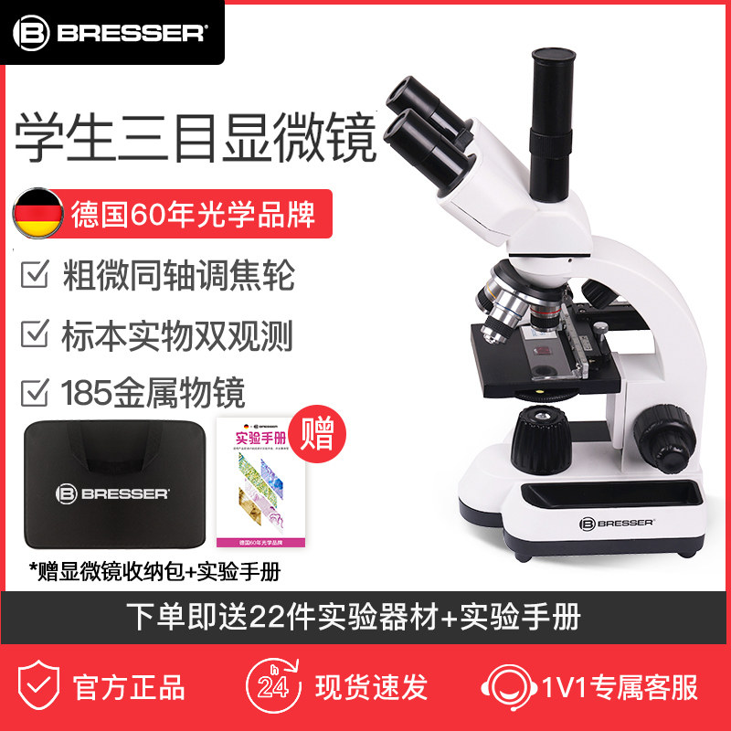 德国宝视德双目显微镜专业三目生物光学高倍高清中学生专用初中生儿童学生科学实验生物bresser儿童节的礼物