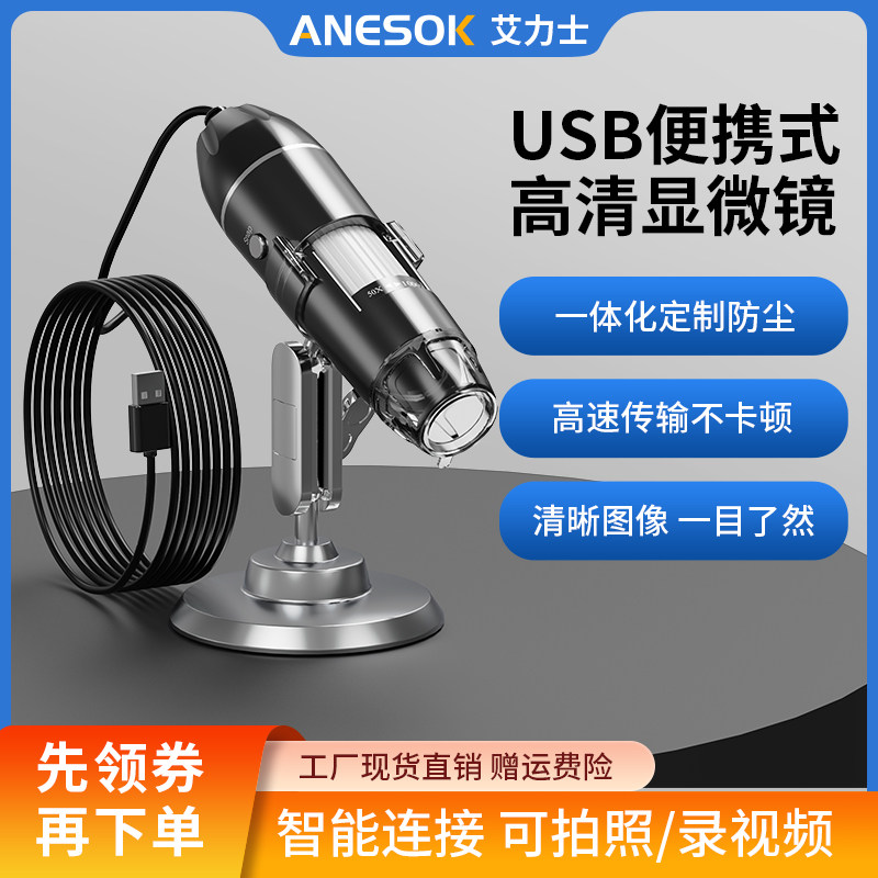 艾力士USB显微镜高清放大镜手持便捷式皮肤检测学生儿童实验玩具可连电脑手机线路板维修