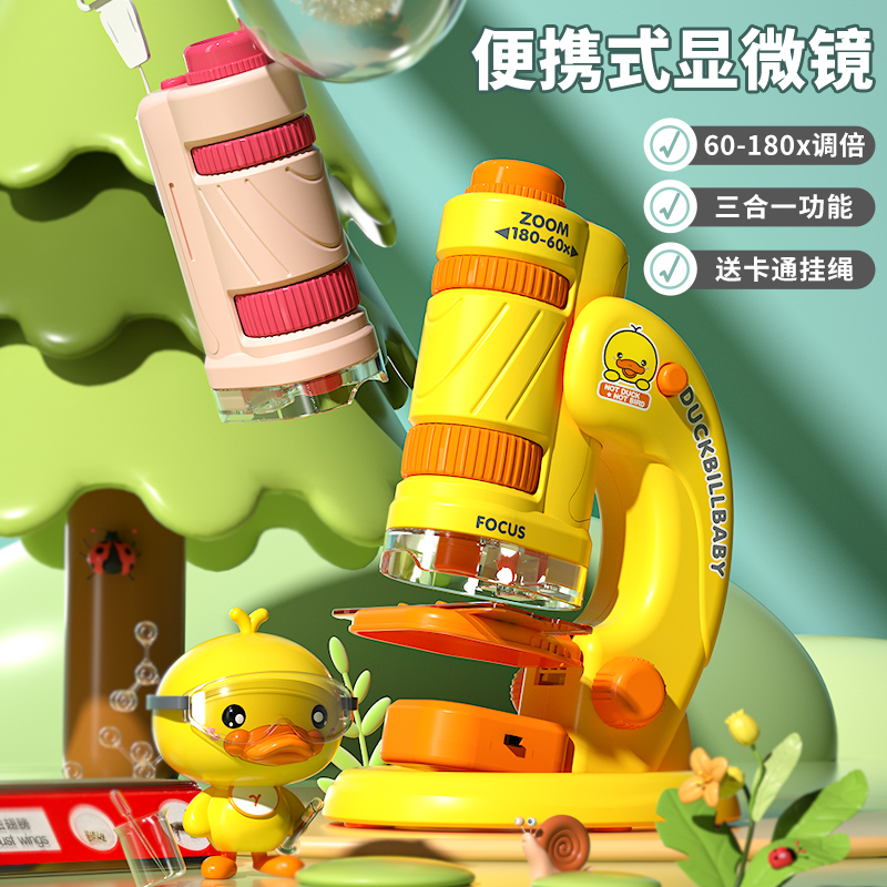 黄小鸭显微镜儿童科学便携式实验套装小学生幼儿园益智玩具男女孩