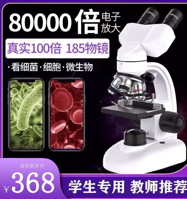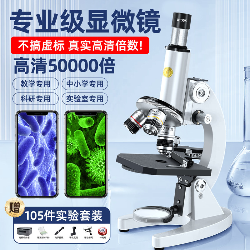 光学三目显微镜80000倍家用光学电子初高中学生小学生儿童科学实验室高清高倍生物精子螨虫可看细菌中考同款