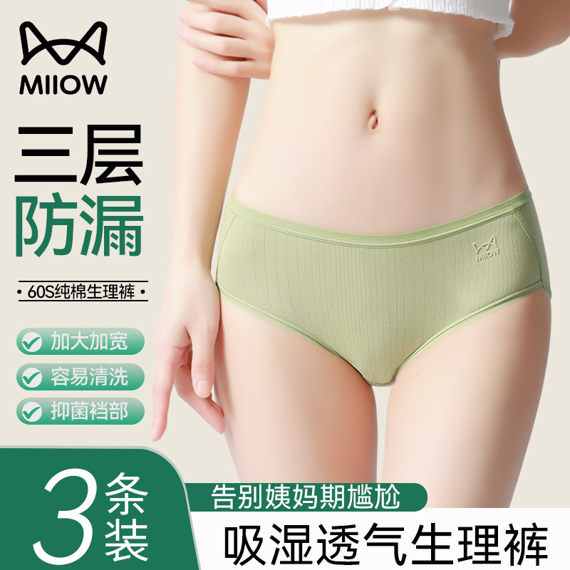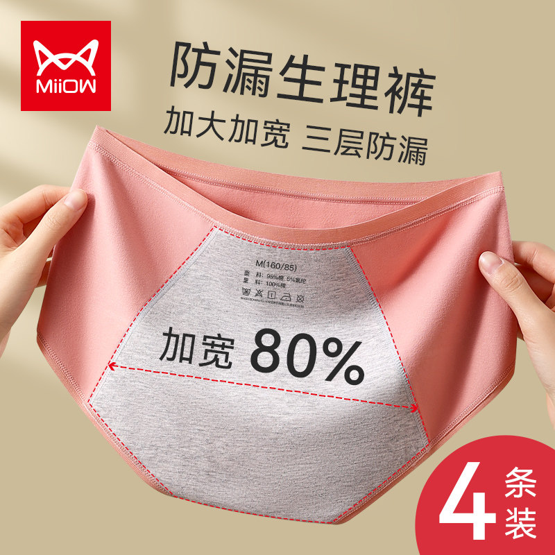 猫人生理裤内裤女纯棉女士月经期防漏例假期专用女生大姨妈内裤
