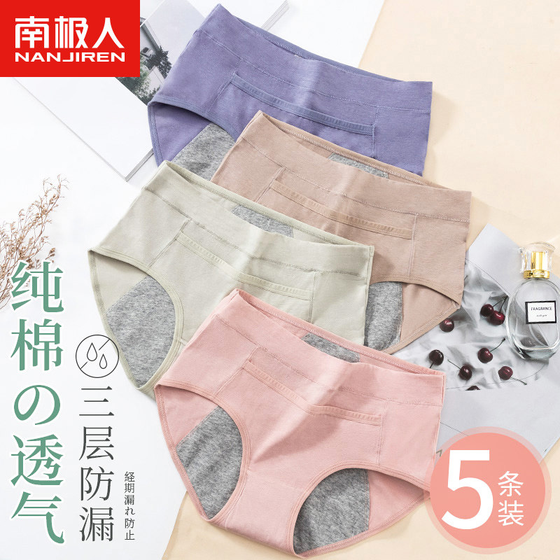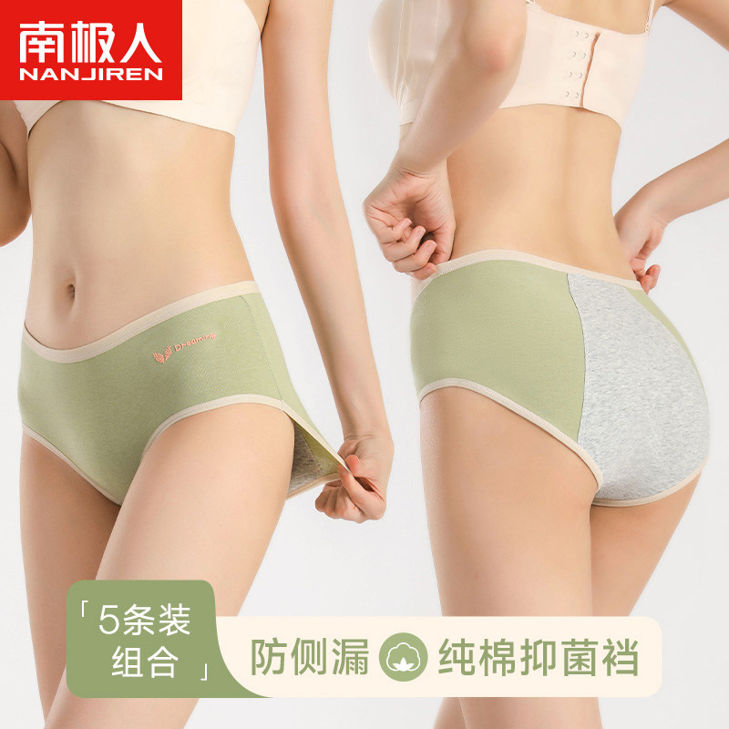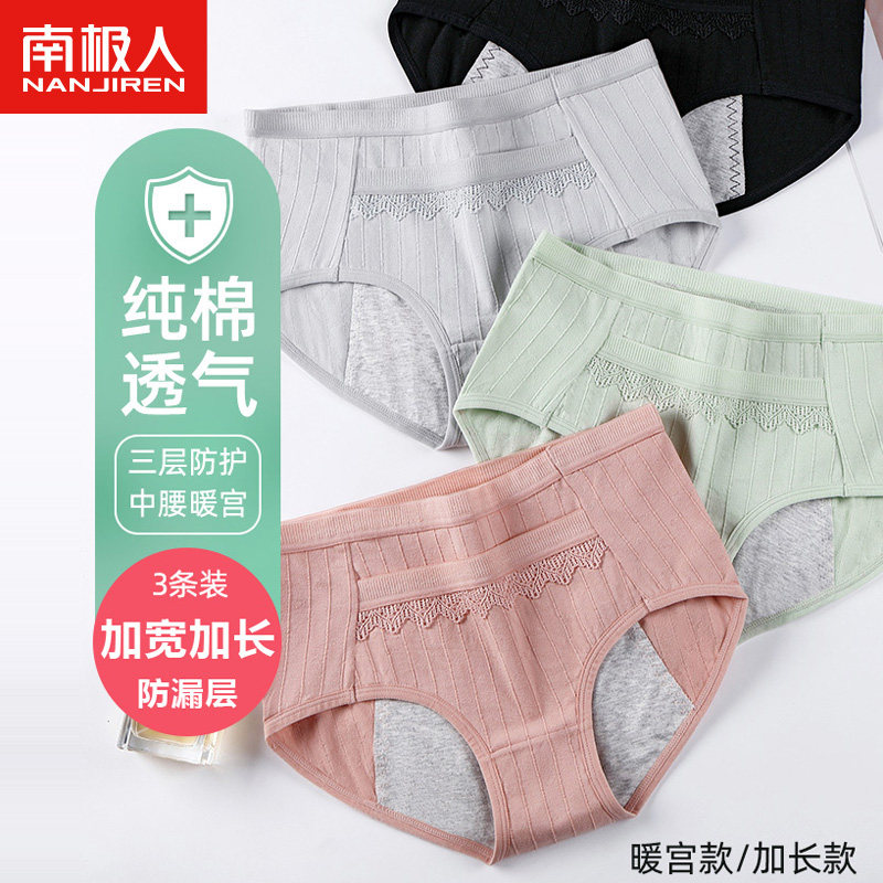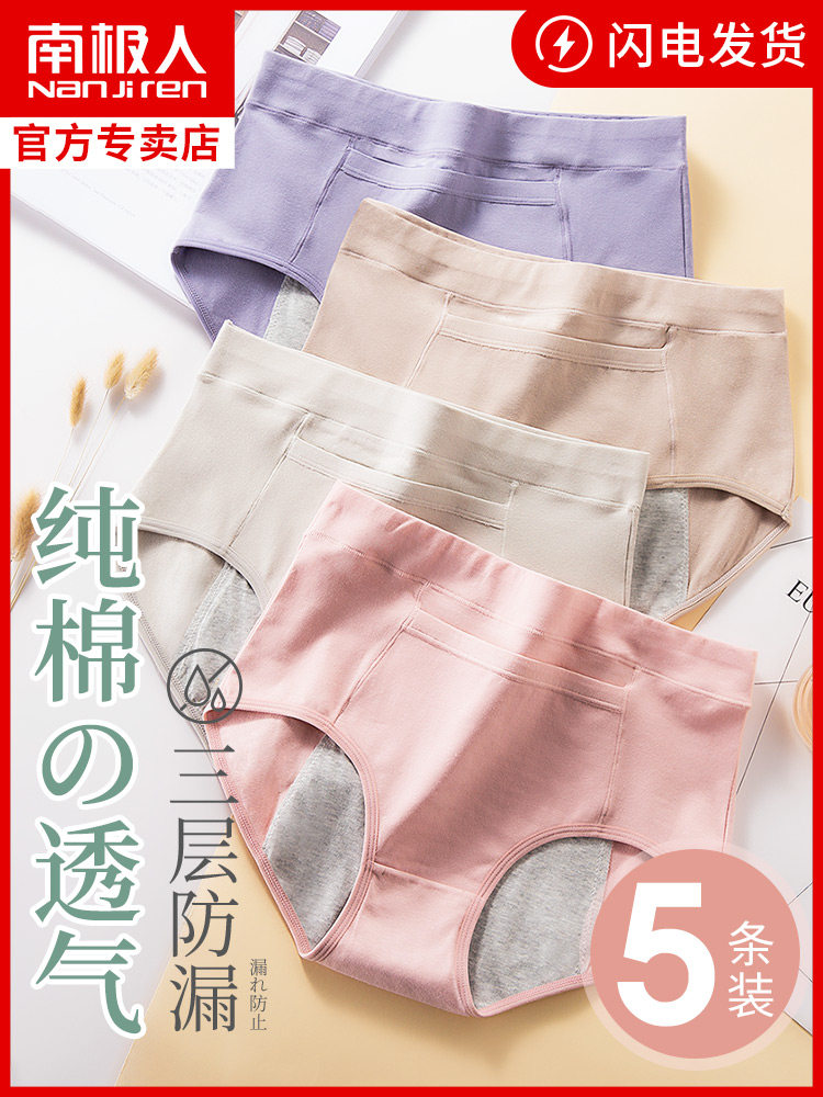 南极人口袋防漏生理内裤女士中高腰抗菌纯棉裆姨妈月经大码三角裤