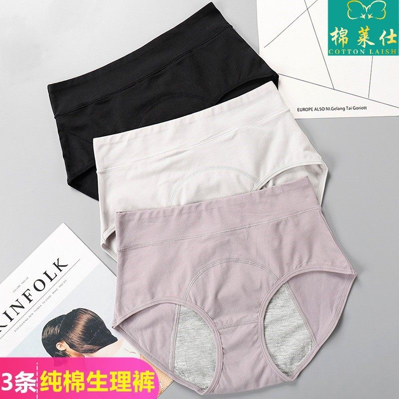 3条纯棉高腰生理裤女士月经期防侧漏女生理期内裤姨妈裤例假专用