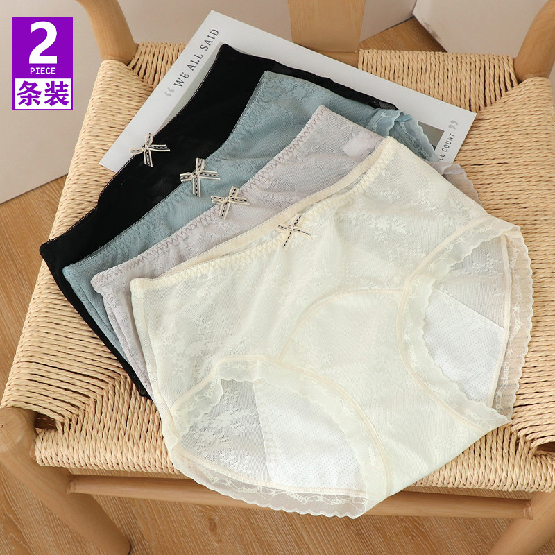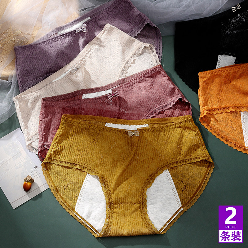 生理内裤女士月经期防漏透气纯棉裆中腰蕾丝大姨妈卫生三角裤底裤