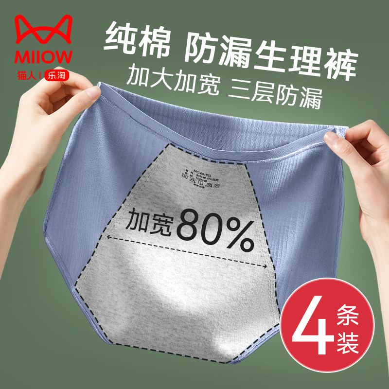 猫人生理内裤女经期防漏高腰纯棉抗菌月经安全裤姨妈裤卫生裤大码