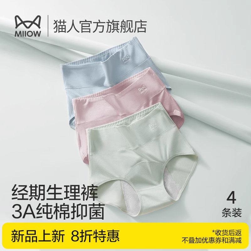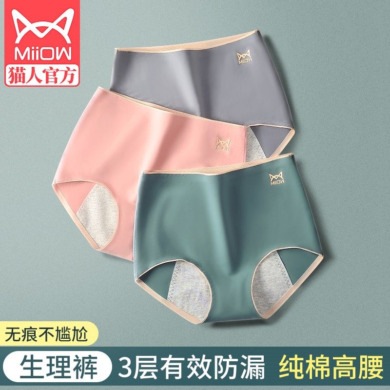 猫人生理期内裤女士月经期防漏高腰纯棉透气例假姨妈期安全卫生裤