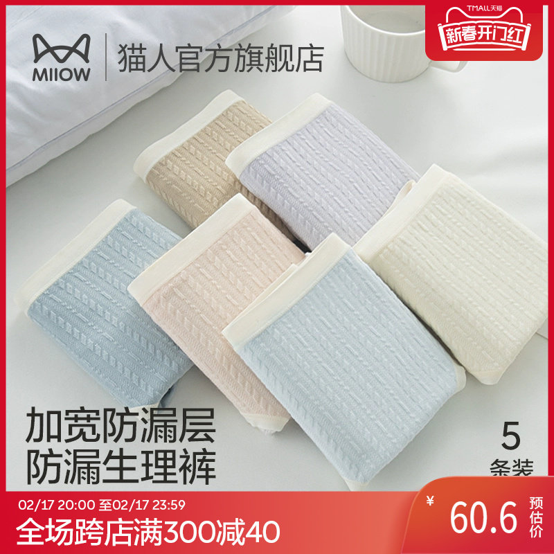 猫人月经期生理裤女士姨妈期防漏内裤女学生纯棉三角例假安全底裤