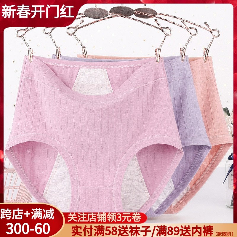 生理内裤女经期中高腰大码三角防侧漏胖mm纯棉姨妈裤月经女士例假