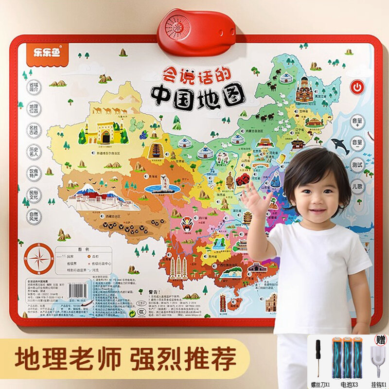 会说话的中国地图2023新版挂墙智能按图发声挂图挂墙宝宝有声发音