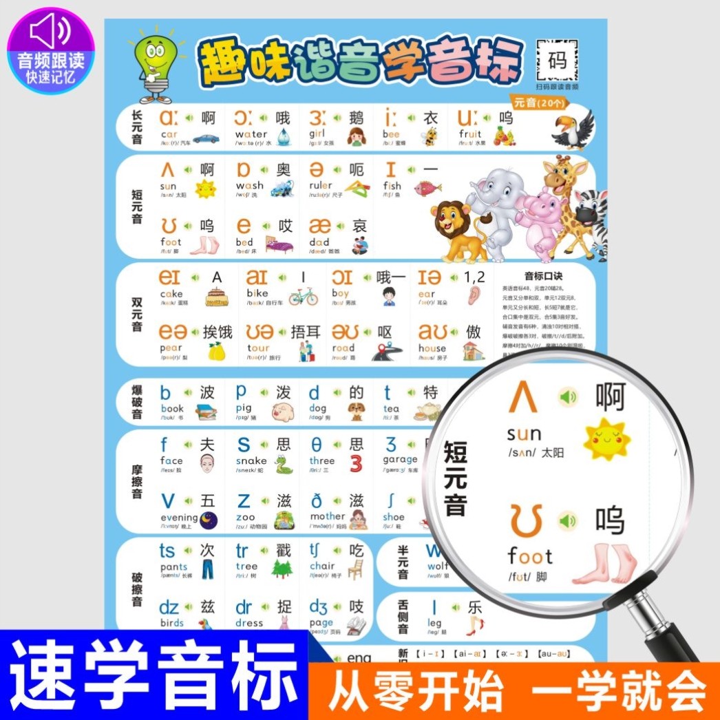 48个国际英语音标口诀表26个英文挂图有声学生发音英标学习神器