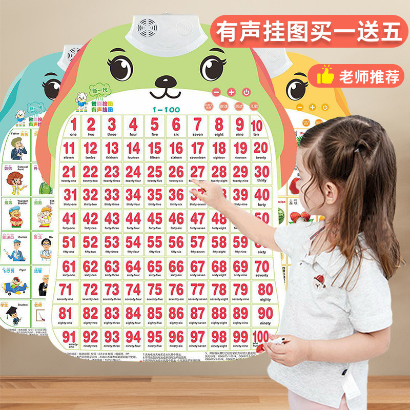 儿童数字1到100有声挂图幼儿数学启蒙点读书宝宝早教神器认知卡片