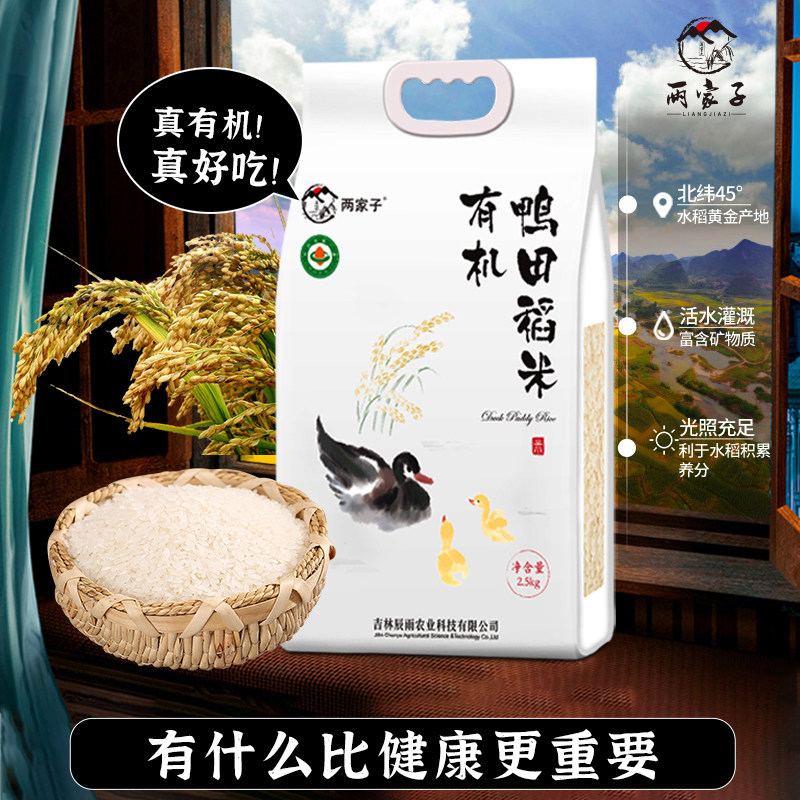 两家子东北有机鸭田稻米2023新米吉林有机大米粳稻米真空5斤包邮