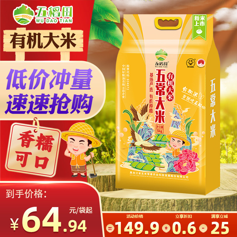 五稻田大米有机五常大米5kg东北粳米10斤当季新米