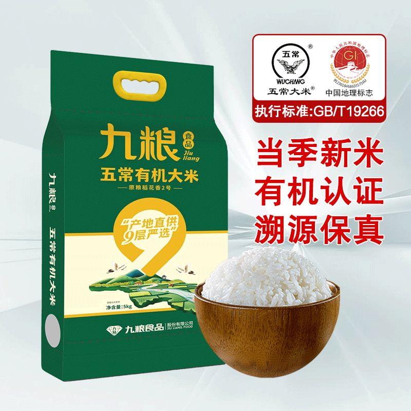 九粮八钻有机五常大米稻花香2号5kg黑龙江2023当季新米东北粳米