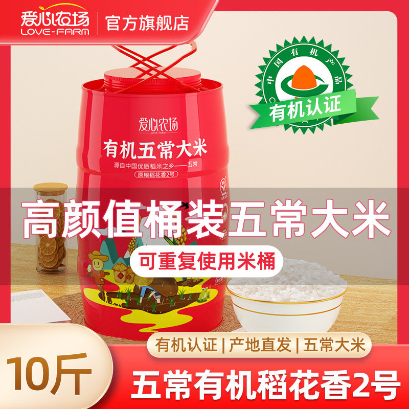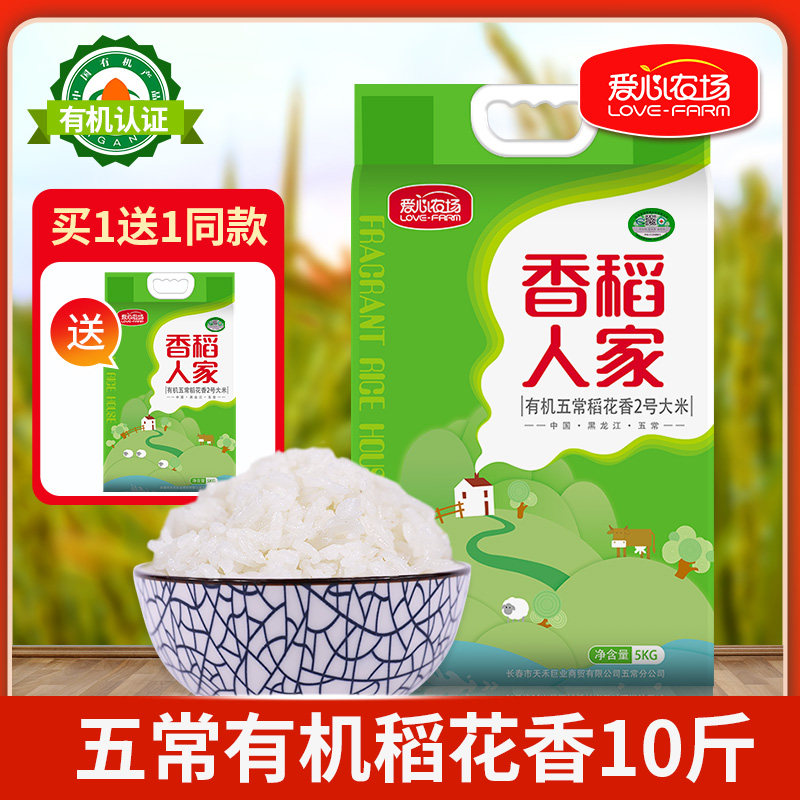 五常有机大米20斤2023新米爱心农场东北黑龙江稻花香大米5kgX2袋