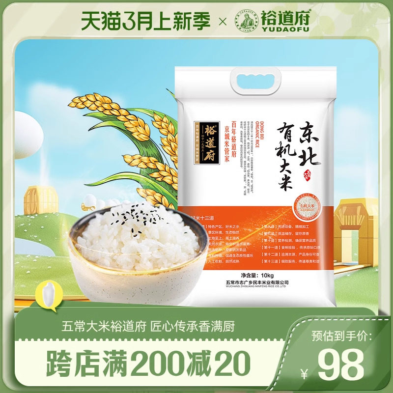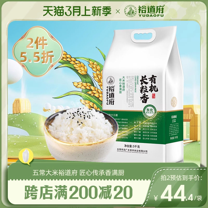 裕道府有机长粒香10斤装 2023年新米东北五常米双层包装大米5kg