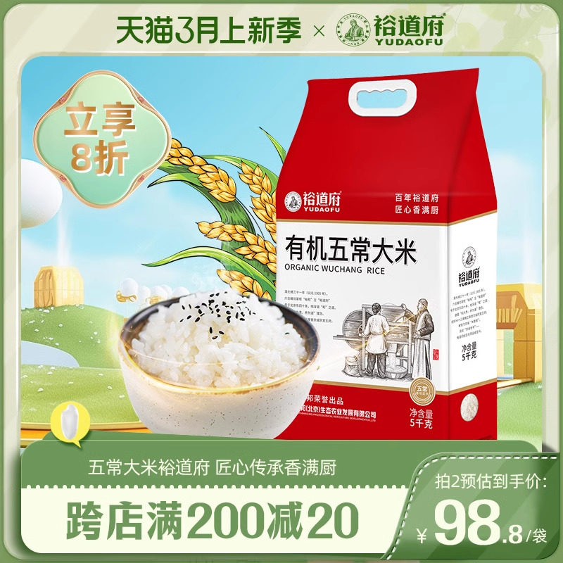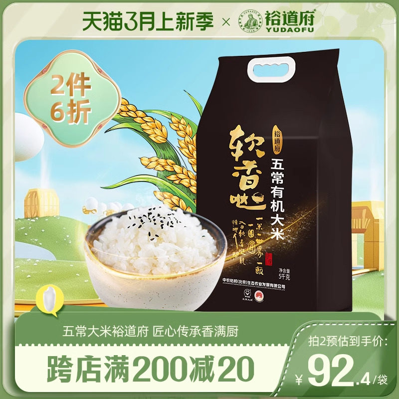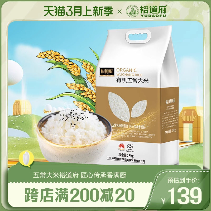 2023年新米裕道府有机五常大米5kg 官方旗舰店东北大米10斤粳米