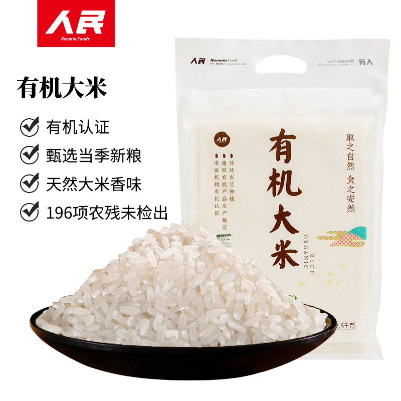 人民食品有机大米2.5kg一级东北大米新米煮粥米饭主食5斤粳米