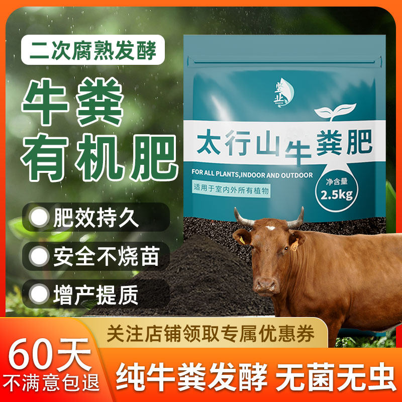 牛粪发酵有机肥种菜专用土60斤阳台养花绿植盆栽通用腐熟羊粪肥料