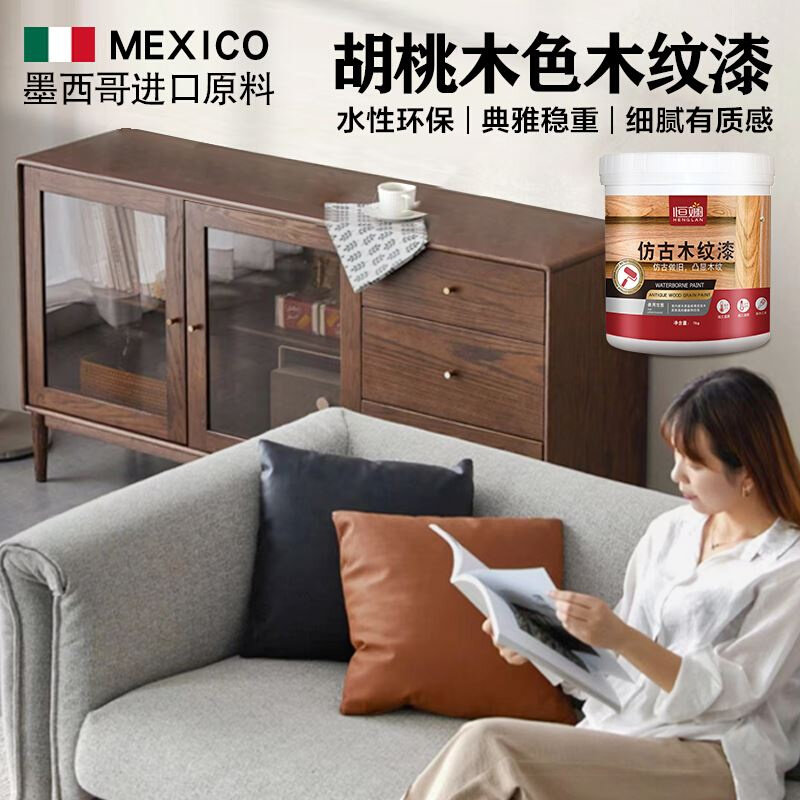 胡桃油漆黑木色浅深水性木仿木头木板翻新改色漆木纹木蜡油木器漆