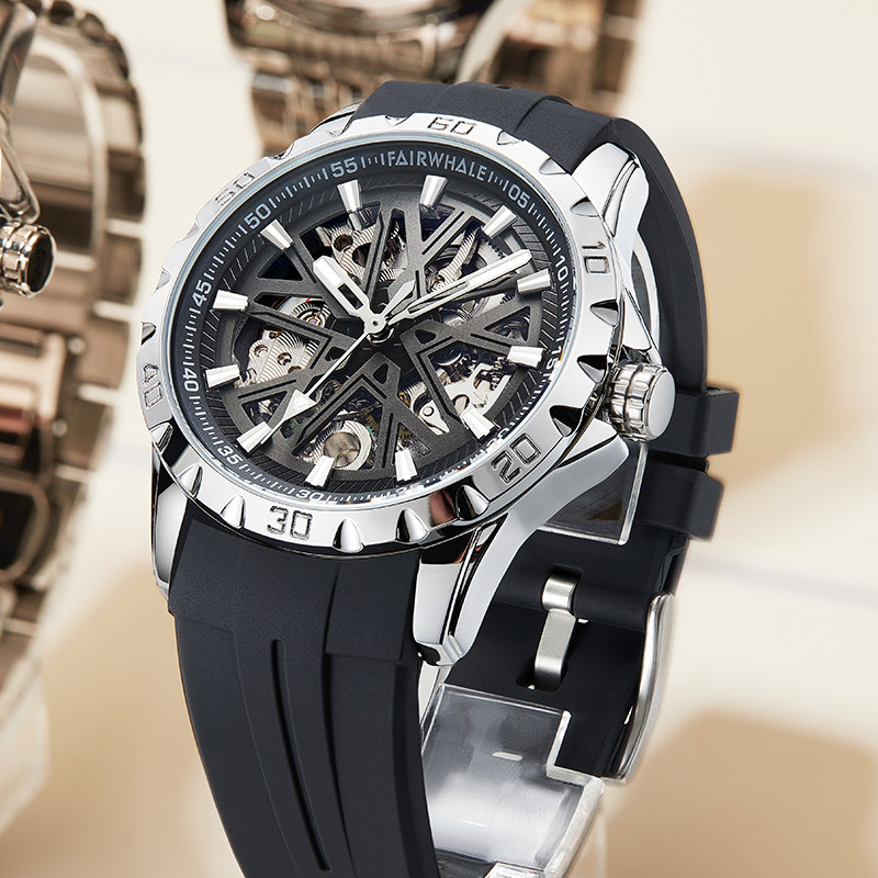 四叶草手表男款学生全自动镂空潮流防水虫洞概念氚气纯机械表男士