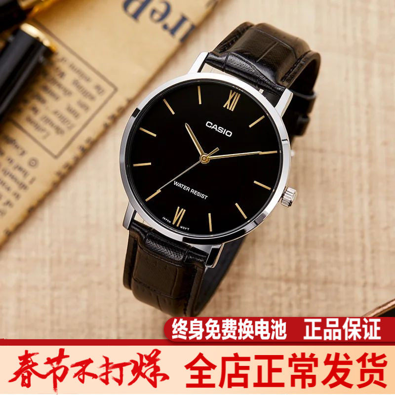 Casio卡西欧手表男通勤防水简约非机械皮带表MTP-VT01L-1B/VD01L