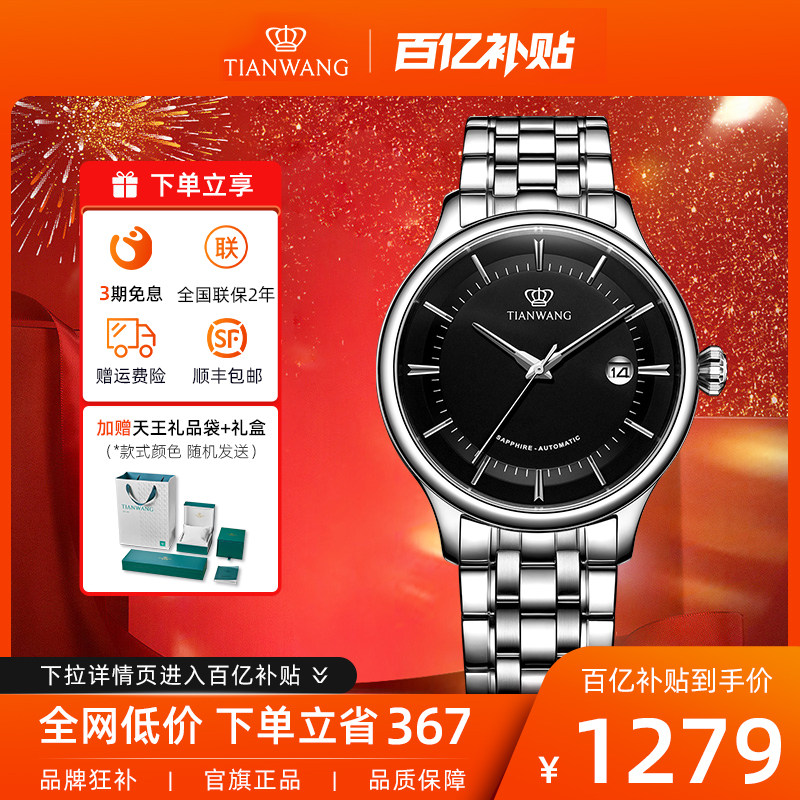 【新年礼物】天王表昆仑系列经典款机械表钢带防水商务手表男5845