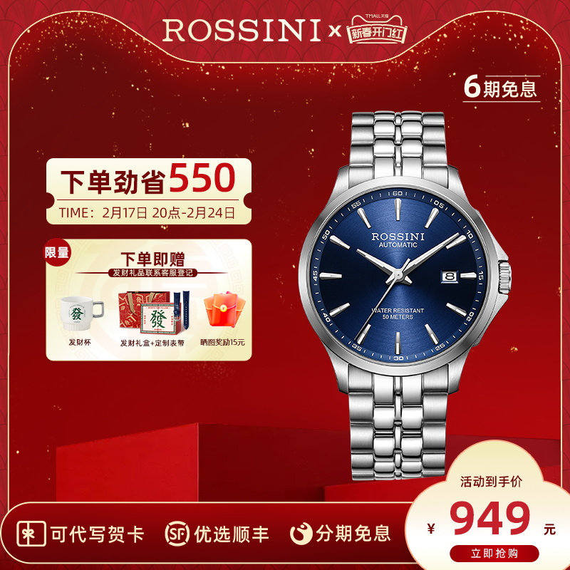 罗西尼手表男款正品男士名牌机械表夜光防水商务男表礼盒5200005