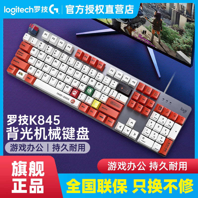 罗技K845机械键盘有线背光个性水晶复古朋克电竞游戏办公青红茶轴