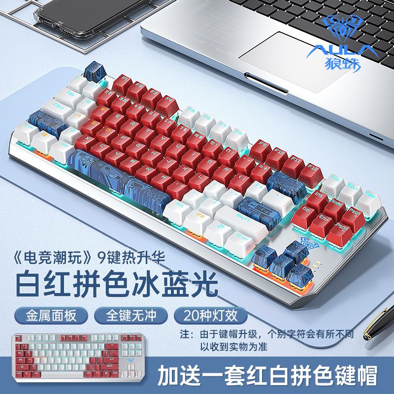 狼蛛机械键盘87键青轴黑轴茶红轴电竞游戏笔记本电脑有线办公便携