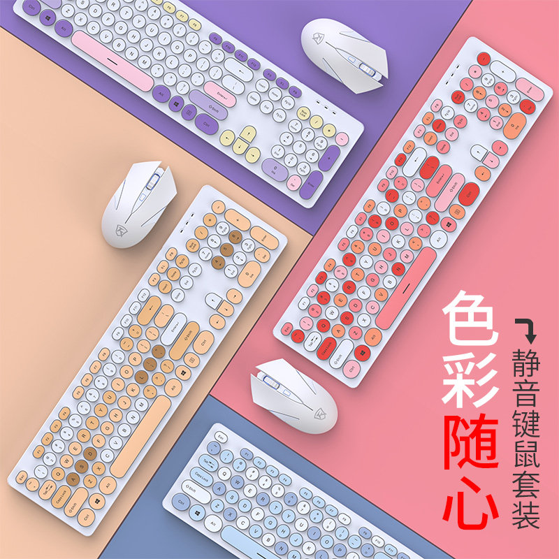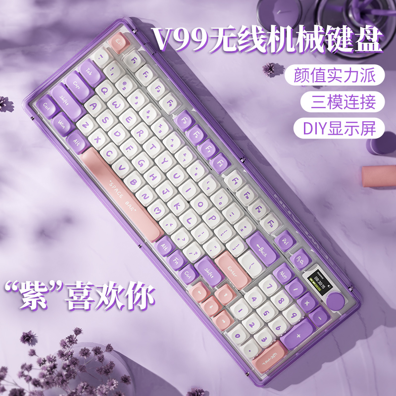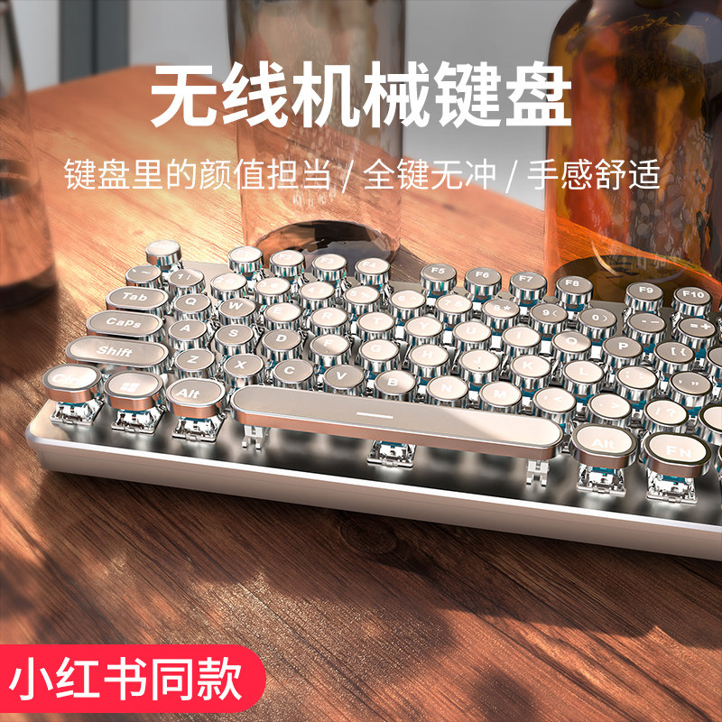前行者V99冰糖甜心机械键盘鼠标套装无线蓝牙女生办公游戏麻将音