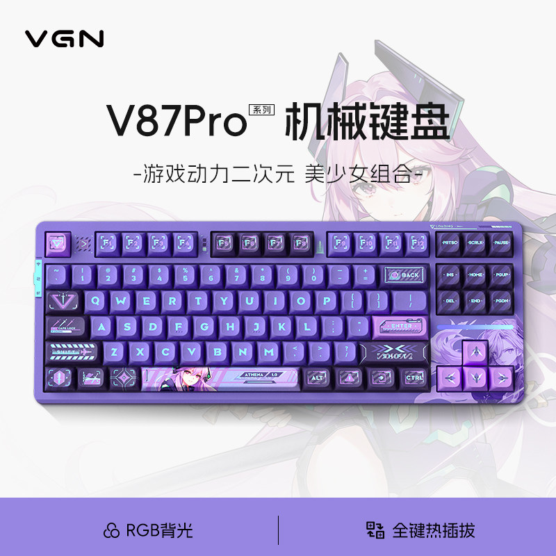 VGN V87pro三模客制化gasket结构全键热插拔RGB机械键盘侧刻