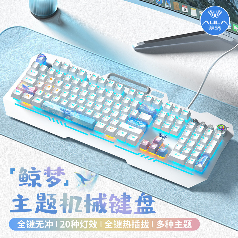 狼蛛收割者机械键盘青茶轴游戏电竞专用电脑笔记本女生有线拼色