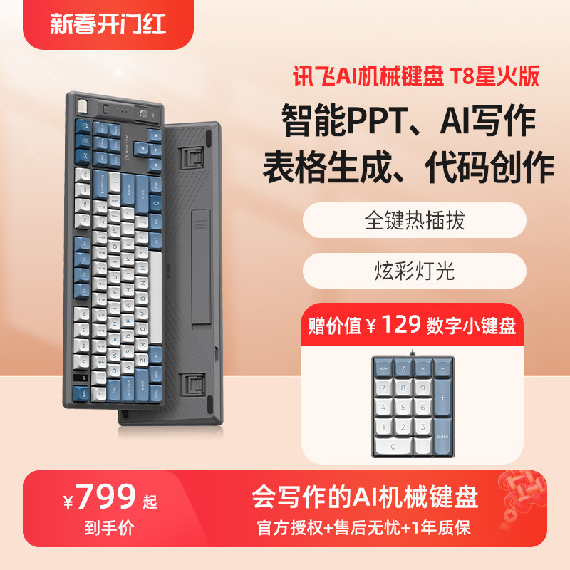 科大讯飞AI机械键盘T8星火版智能写作PPT表格语音打字翻译红轴