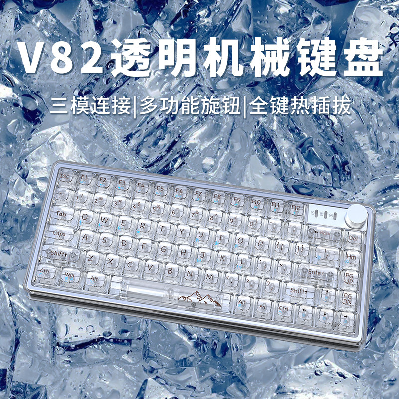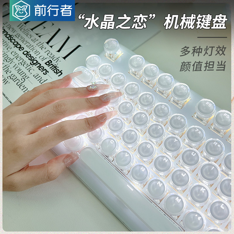 前行者V82透明机械键盘无线蓝牙水晶鼠标套装女生办公游戏客制化